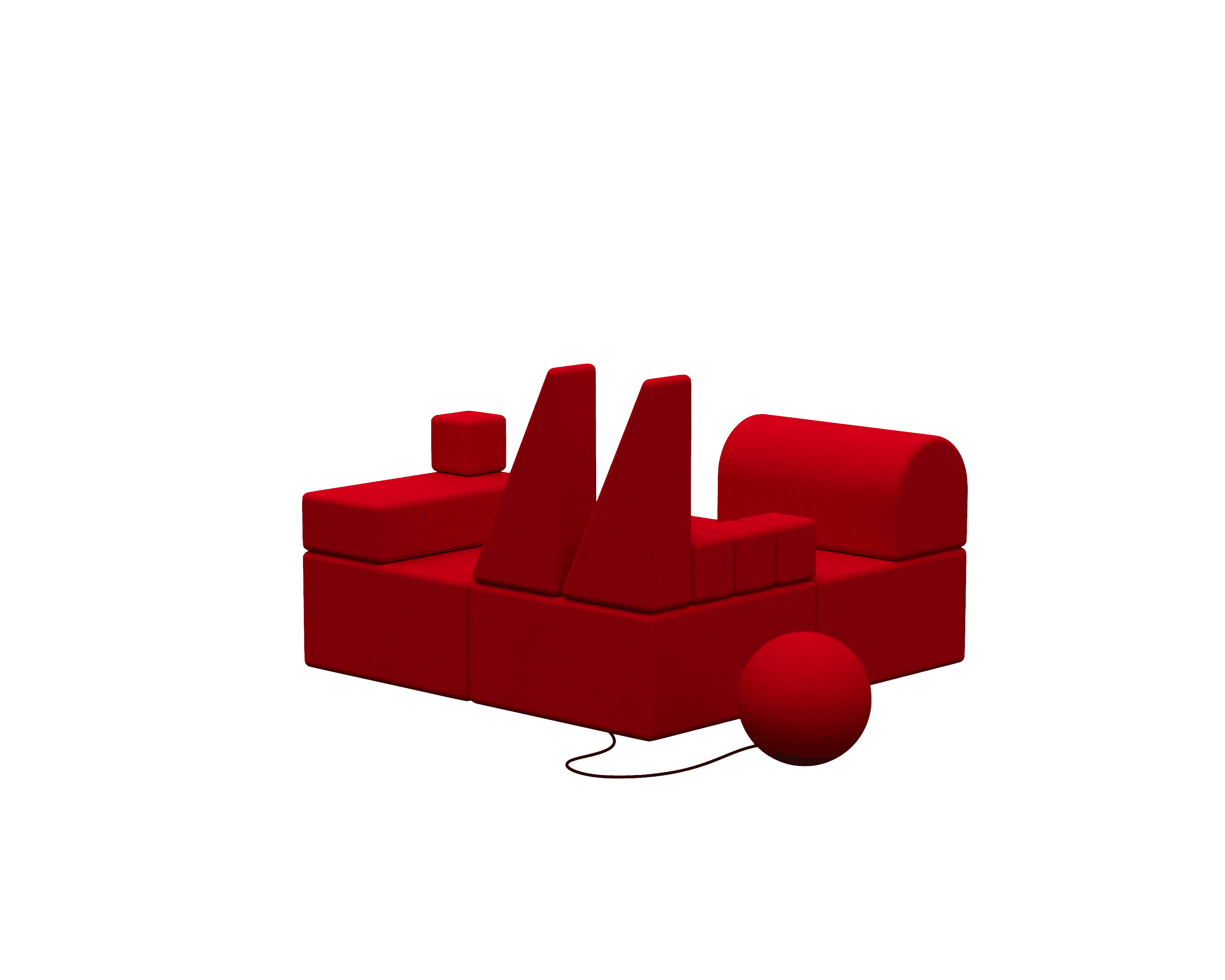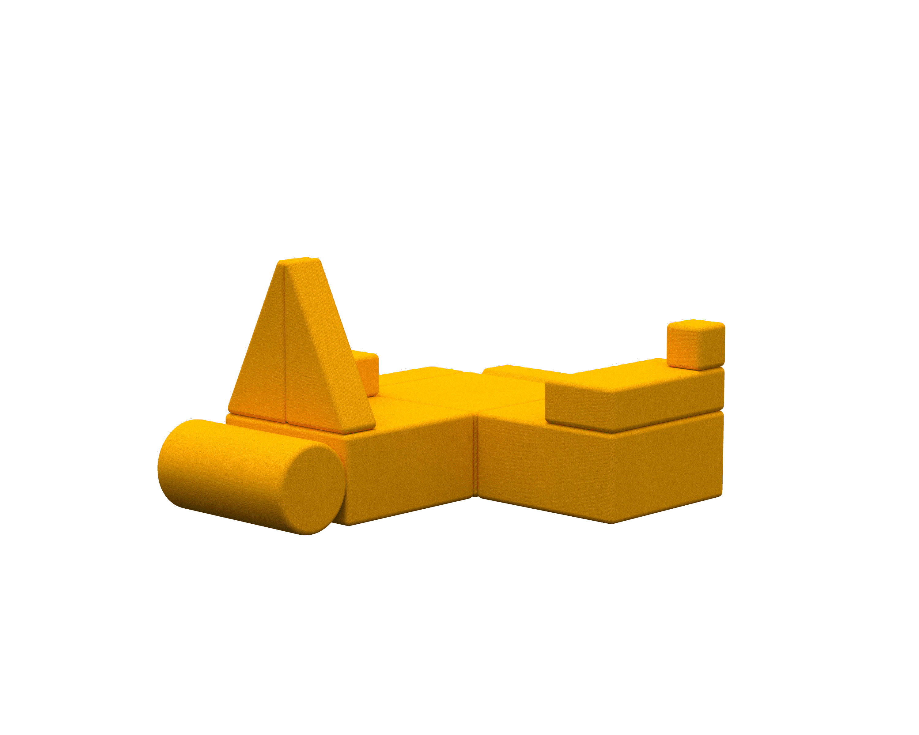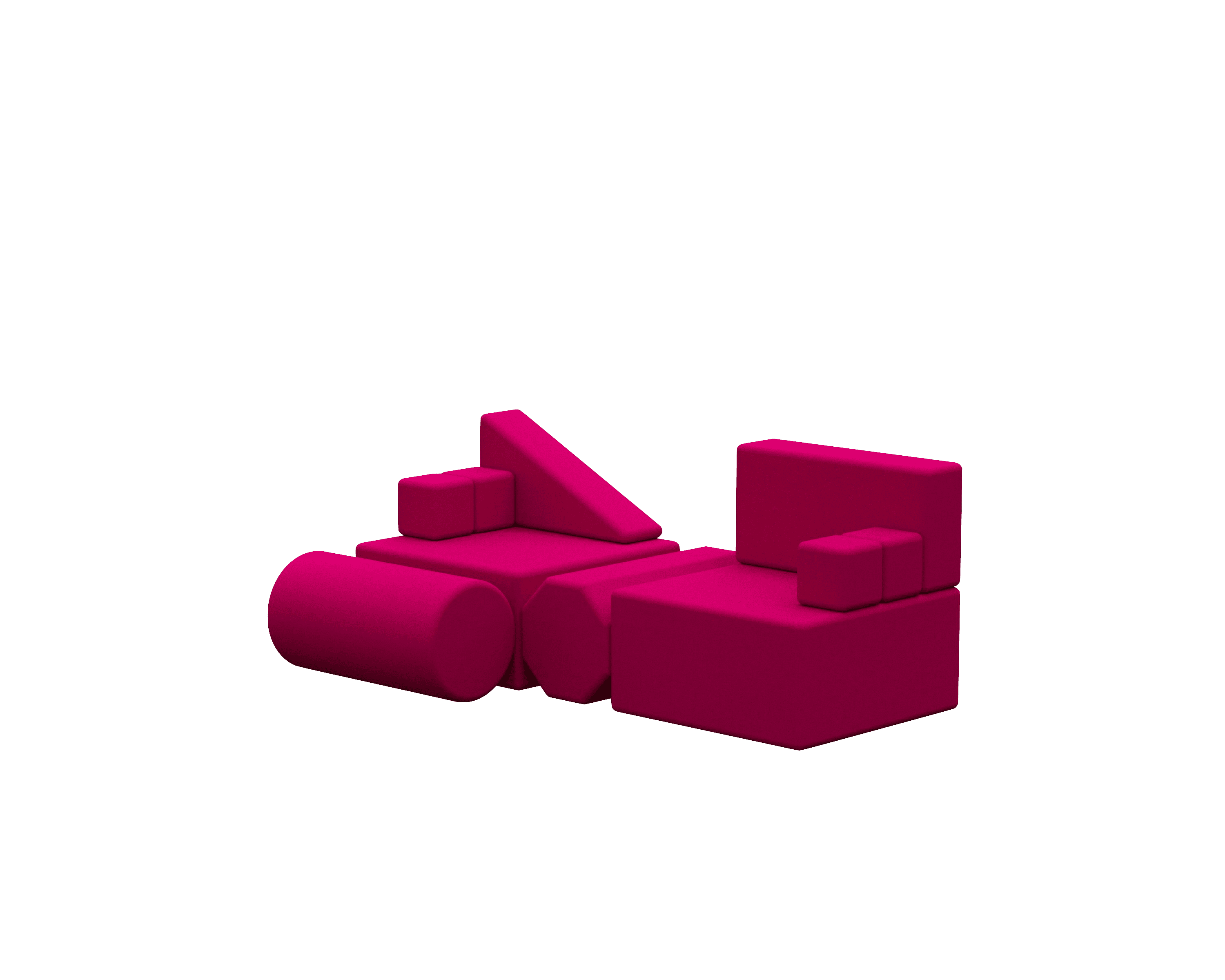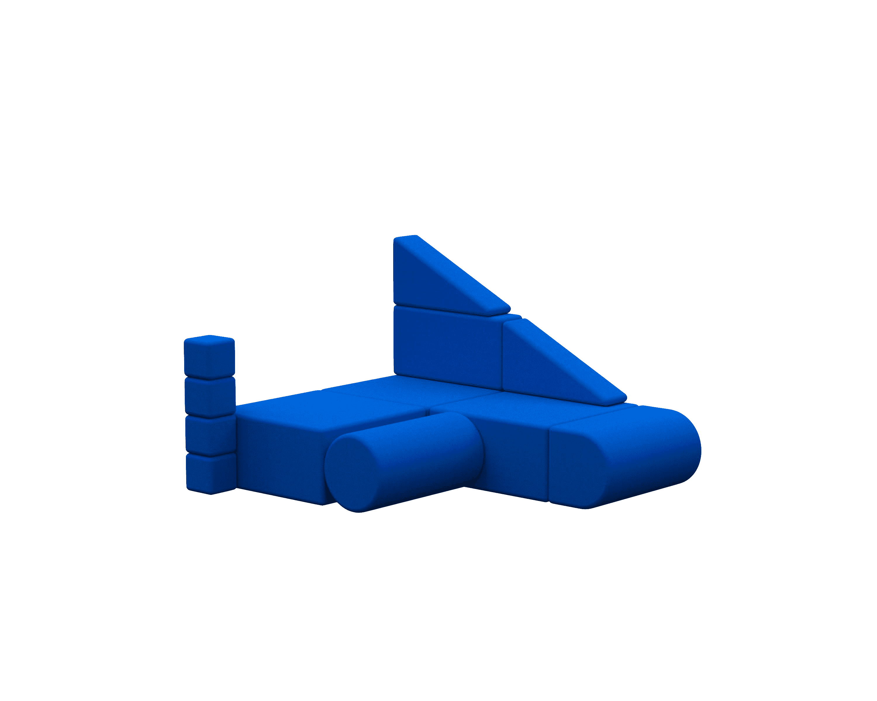 This is a simple collection – primitive building blocks scaled up, attired in vivid material. The configurations recall many things, one is beachside memories of making sandcastles as kids. With PILOT, we set out to unite people in the most playful, primal way possible.