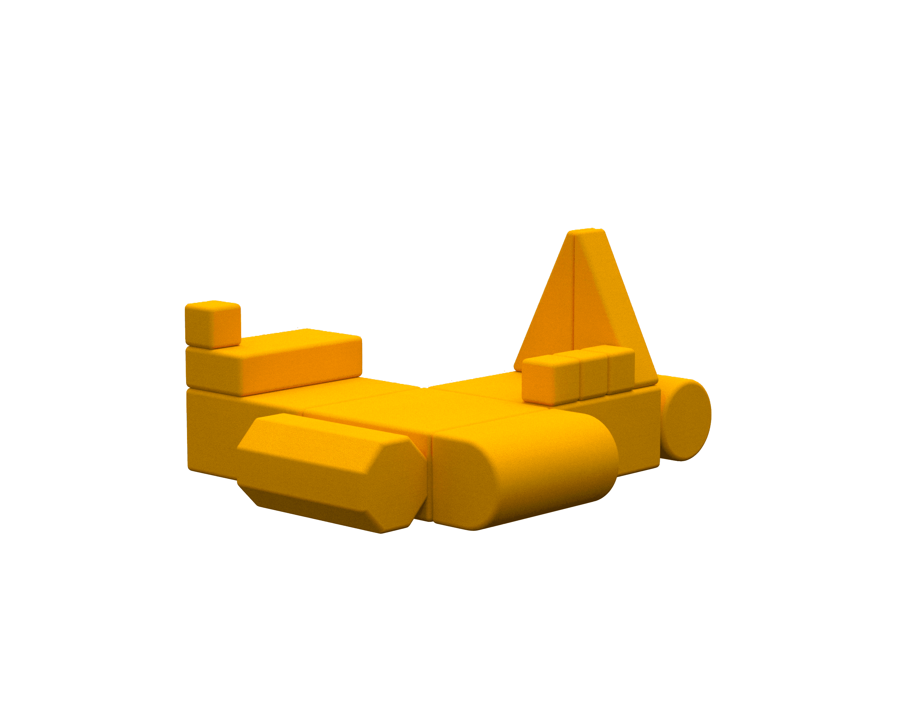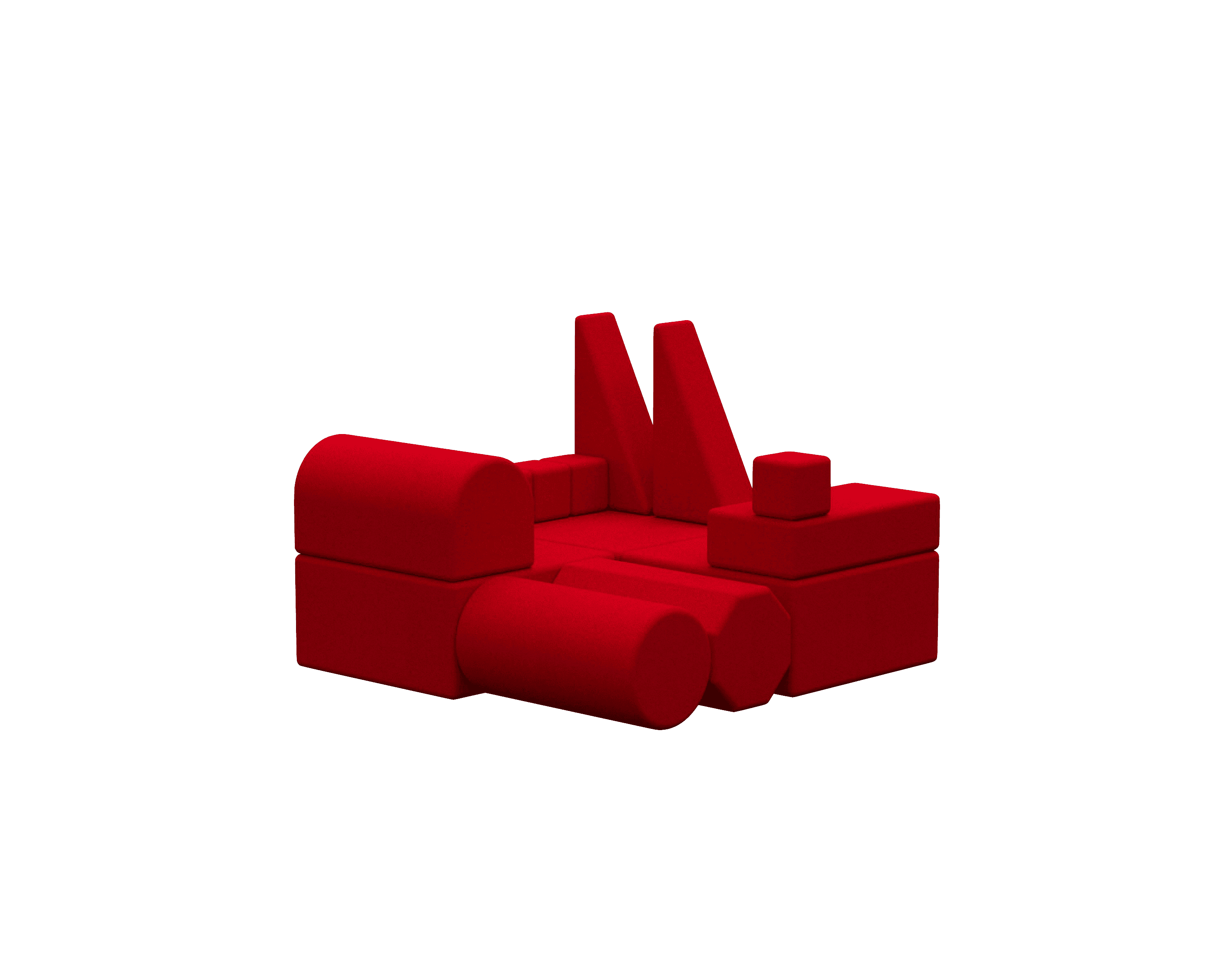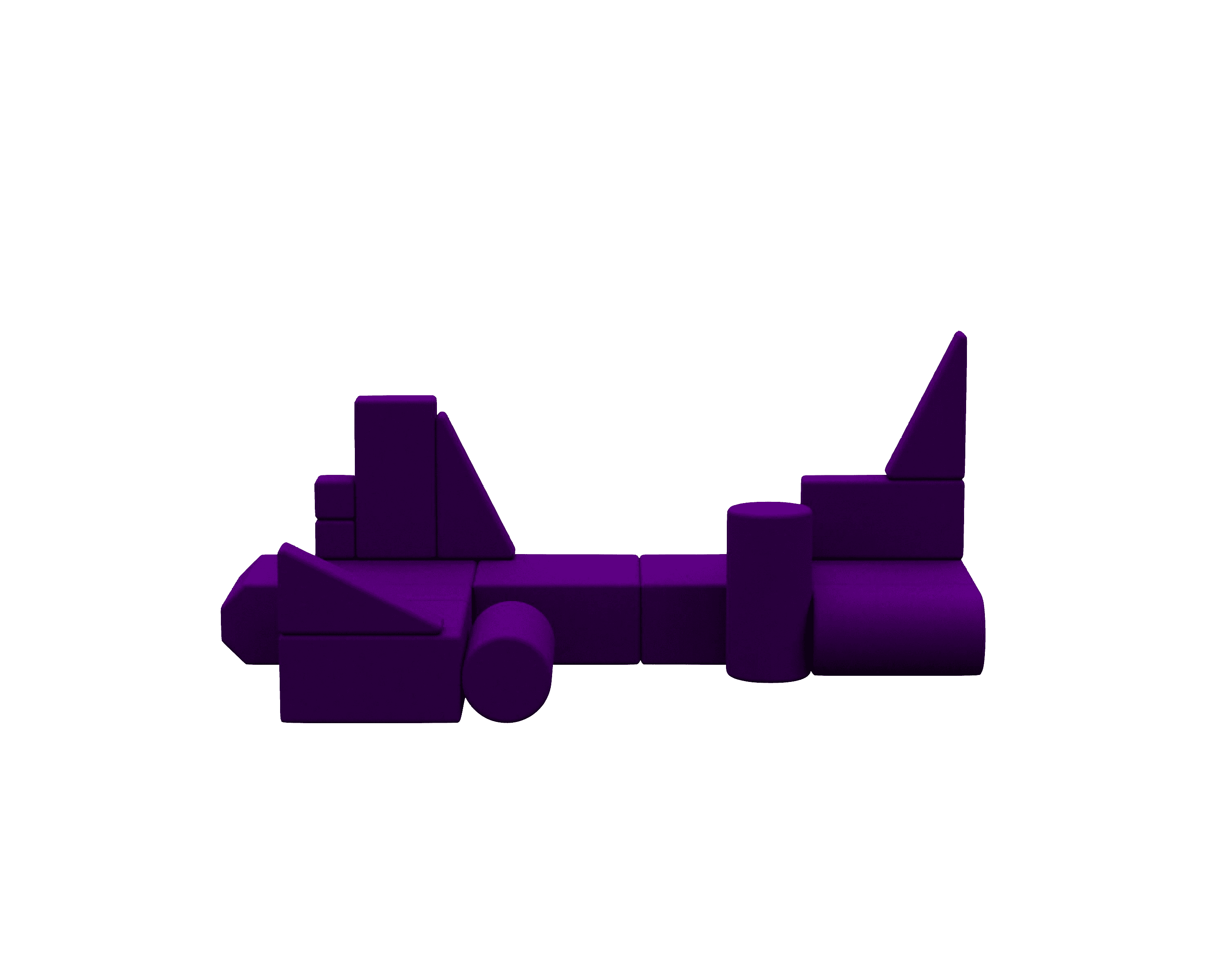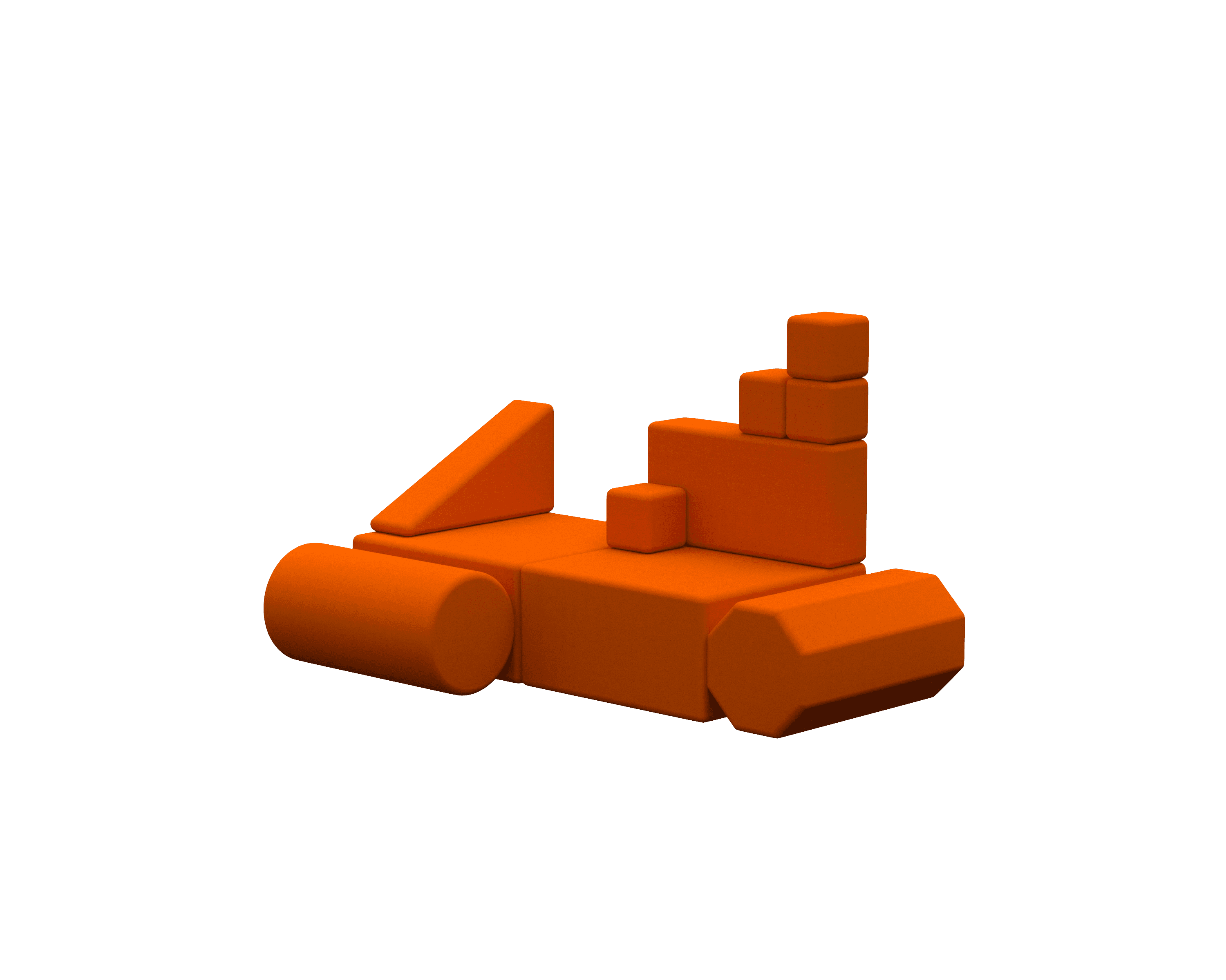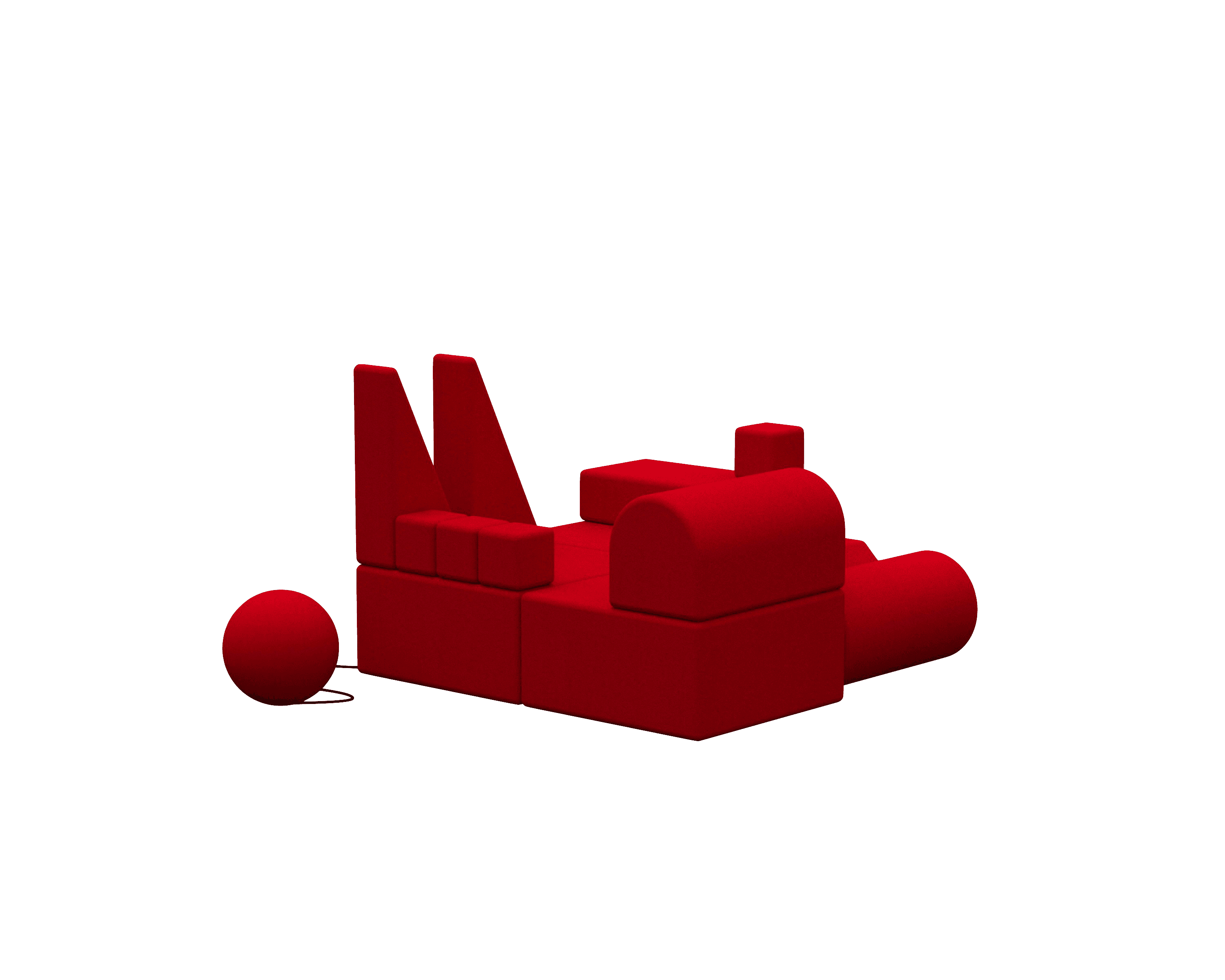 This is a simple collection – primitive building blocks scaled up, attired in vivid material. The configurations recall many things, one is beachside memories of making sandcastles as kids. With PILOT, we set out to unite people in the most playful, primal way possible.
