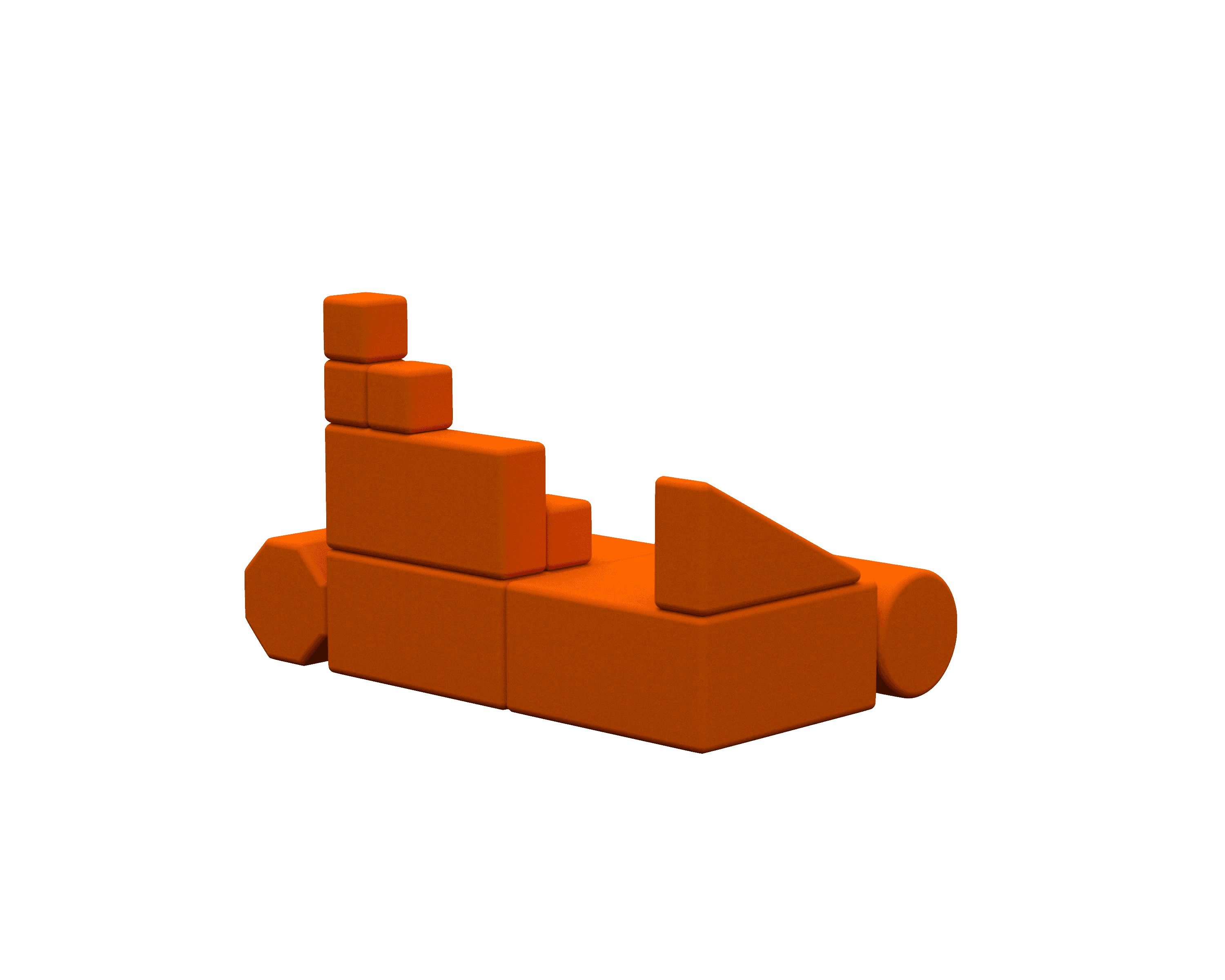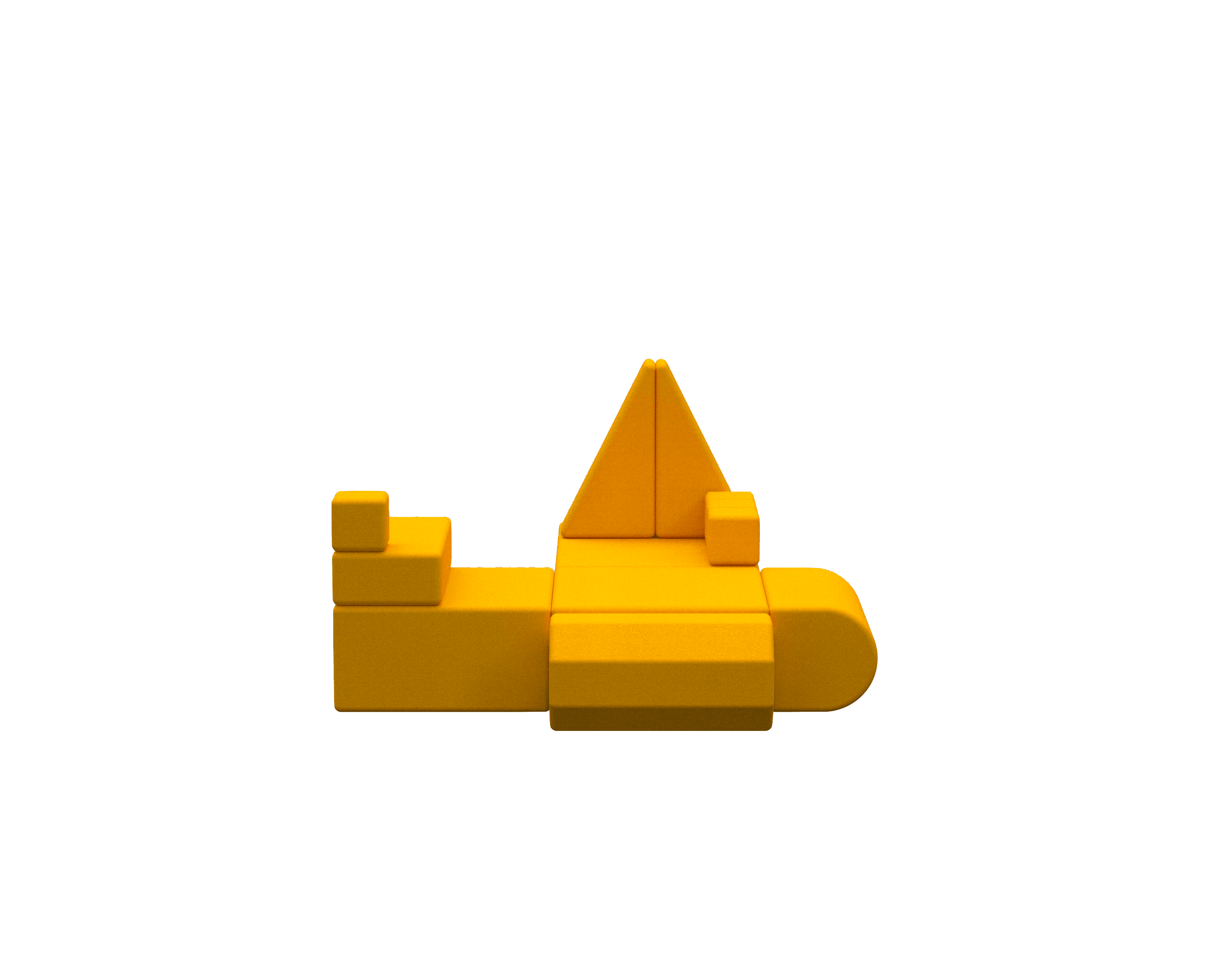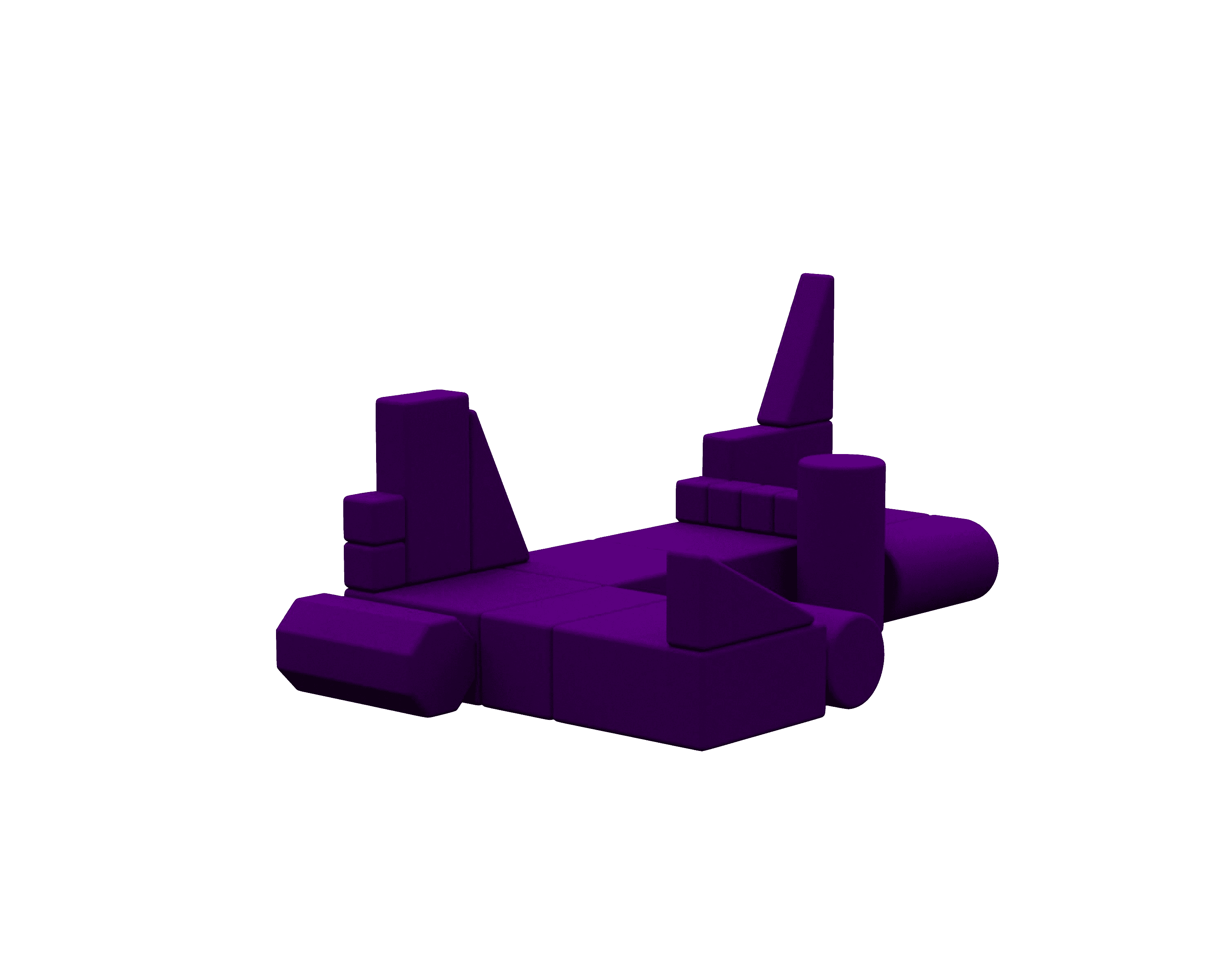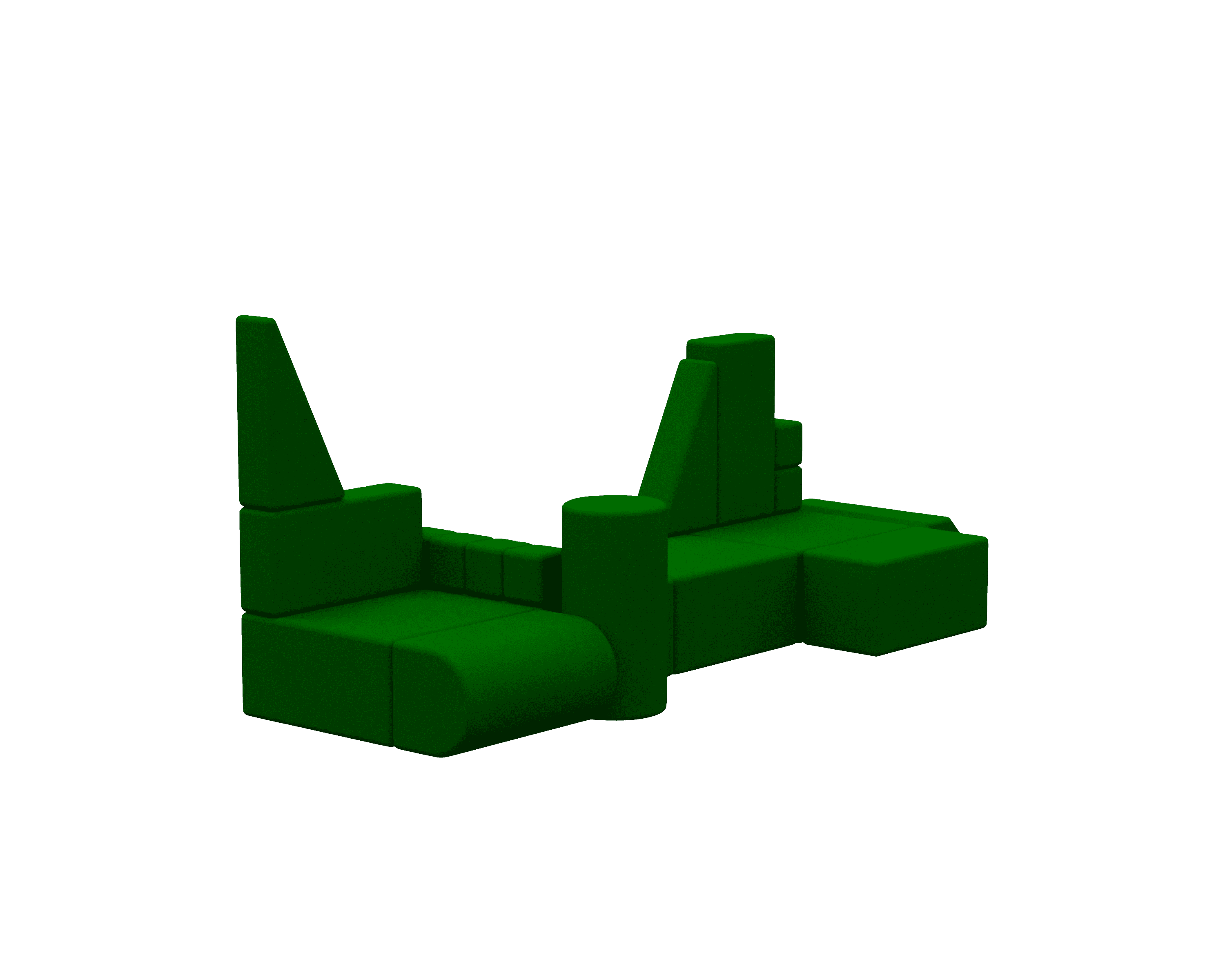 This is a simple collection – primitive building blocks scaled up, attired in vivid material. The configurations recall many things, one is beachside memories of making sandcastles as kids. With PILOT, we set out to unite people in the most playful, primal way possible.